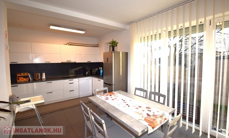 - tágas világos nappali, közvetlen terasz kapcsolattal